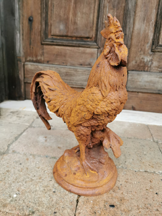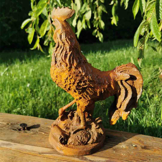Handgefertigter Hahn aus Gusseisen mit Naturrost