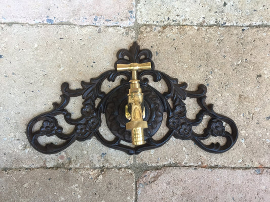 Wandornament mit Wasserhahn aus Gusseisen und Messing